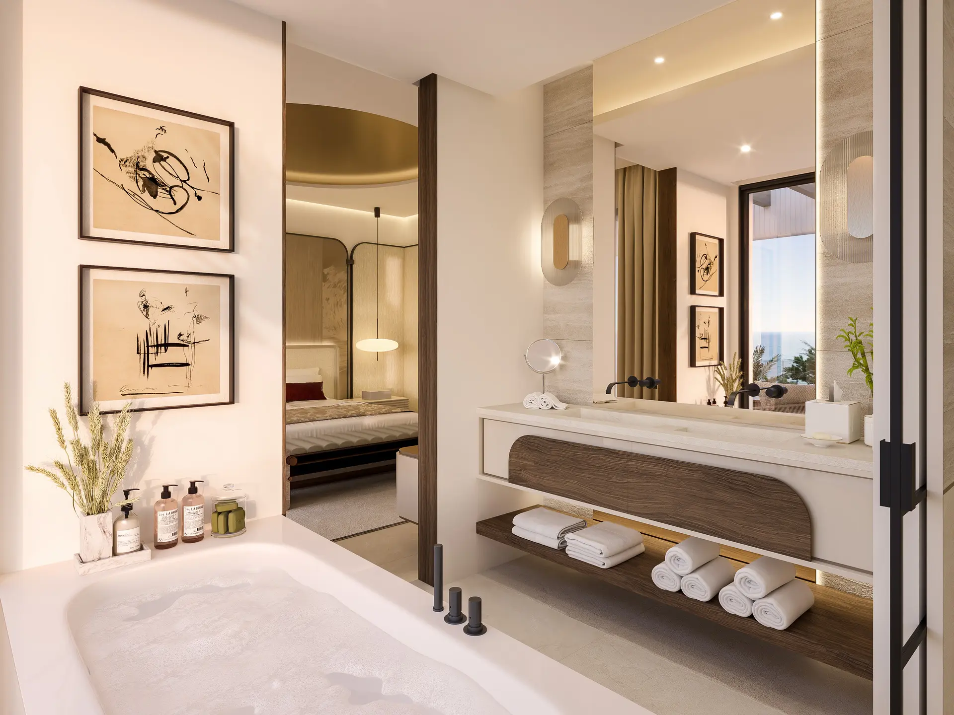 Features: 24 Hour Security, Social Club including two gyms, a heated indoor pool, a full spa, a coworking area, a terrace featuring an infinity pool, pool bar, sun loungers and a chill-out zone with unbeatable views of the Mediterranean coastline.